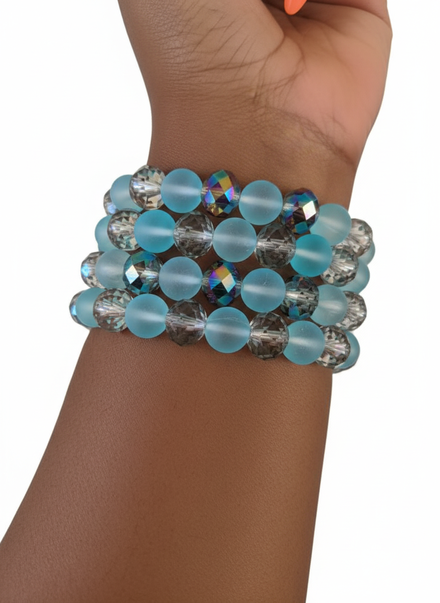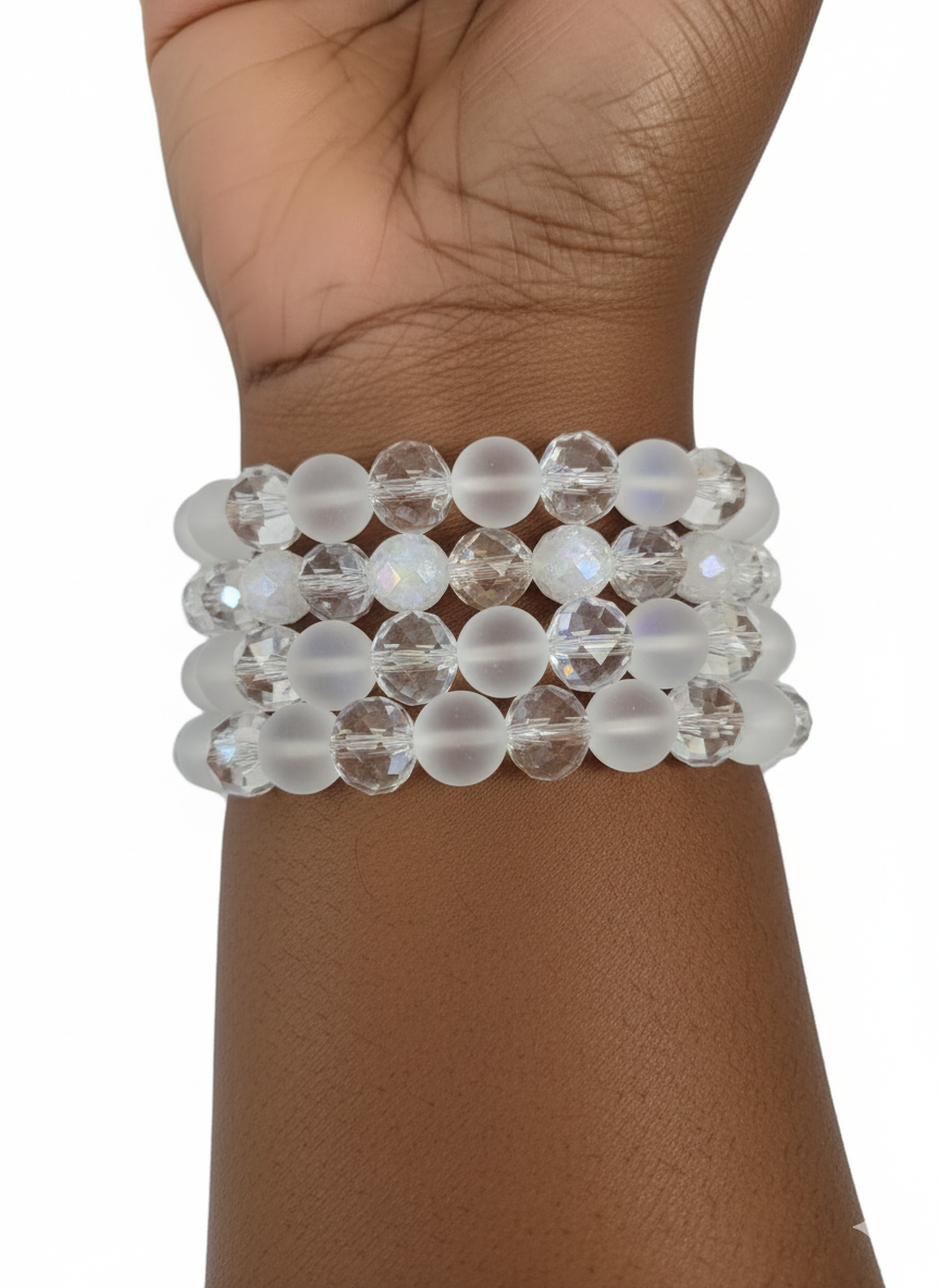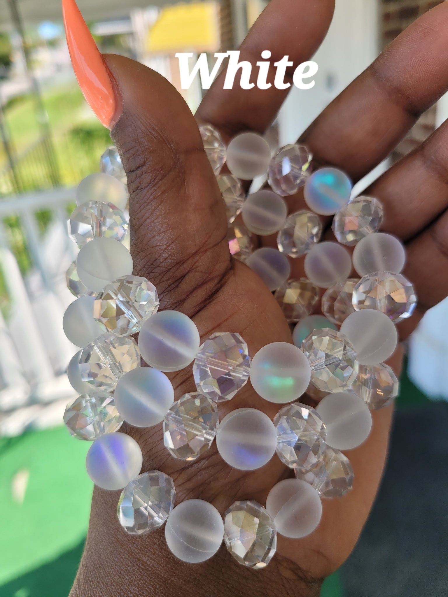 These Stacks Of 3 Are Made With 12mm Faux Opal & Crystal Beads. Each Bracelet Fits Wrist Size 7.5"-8" Wrist.
