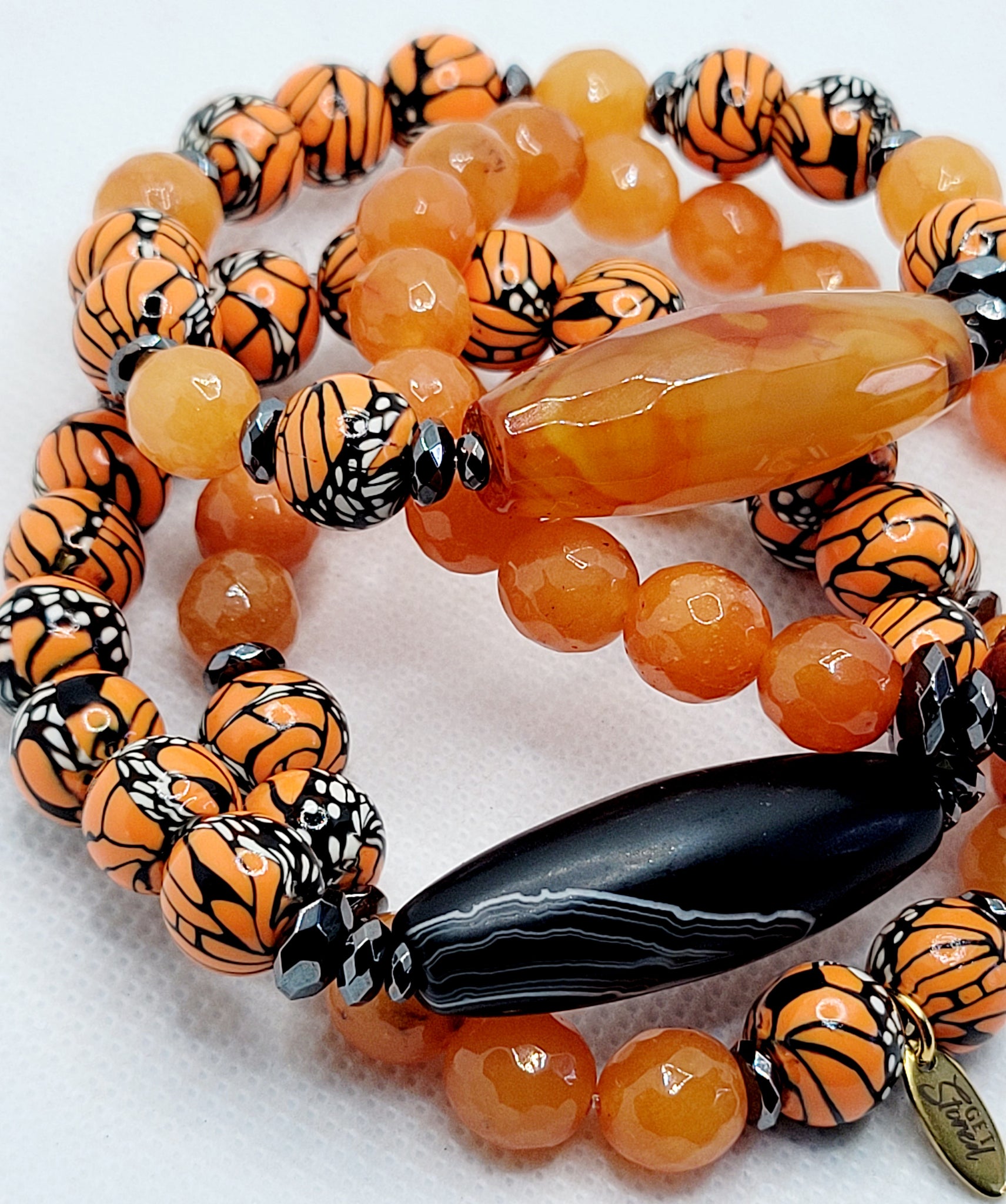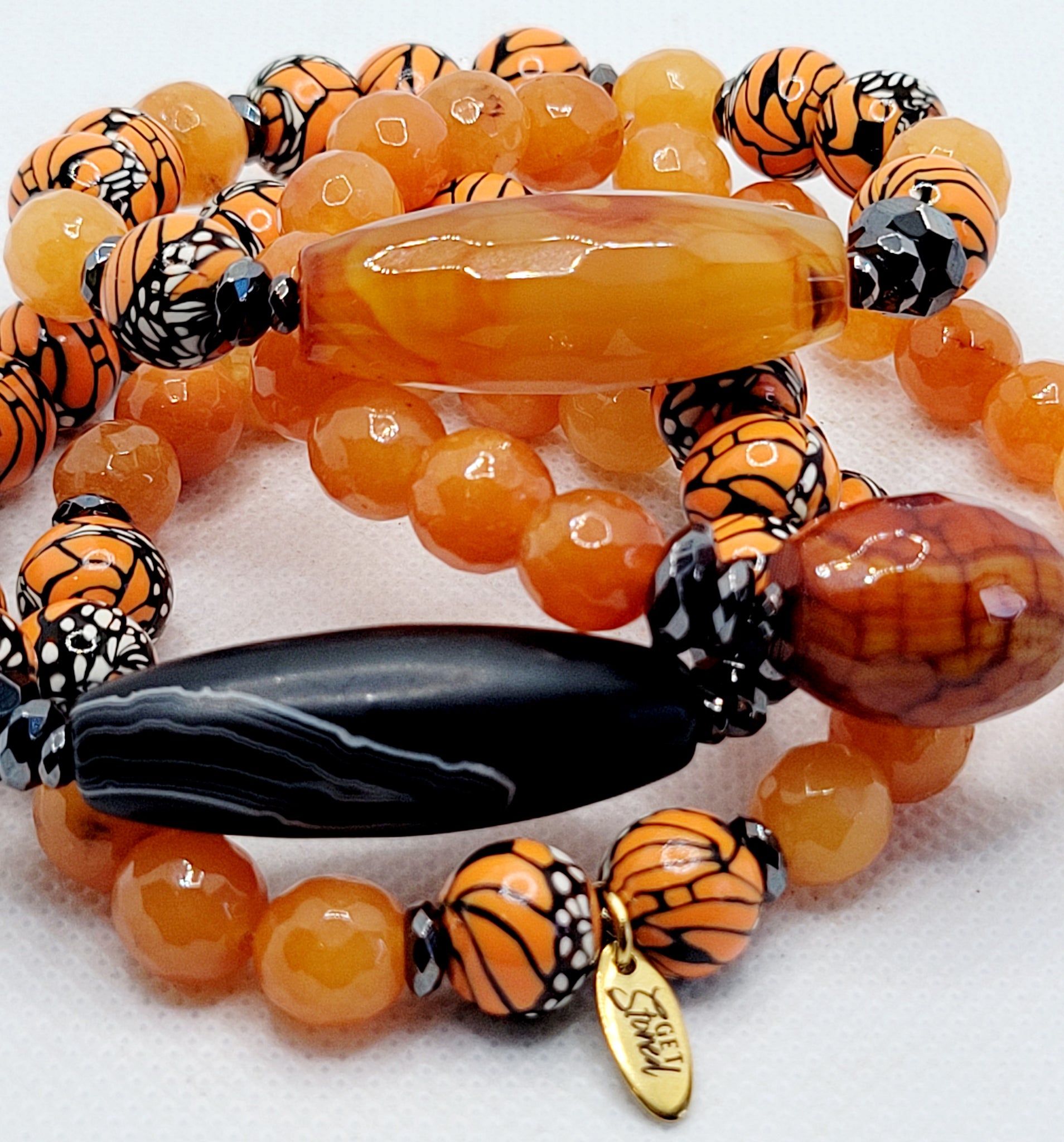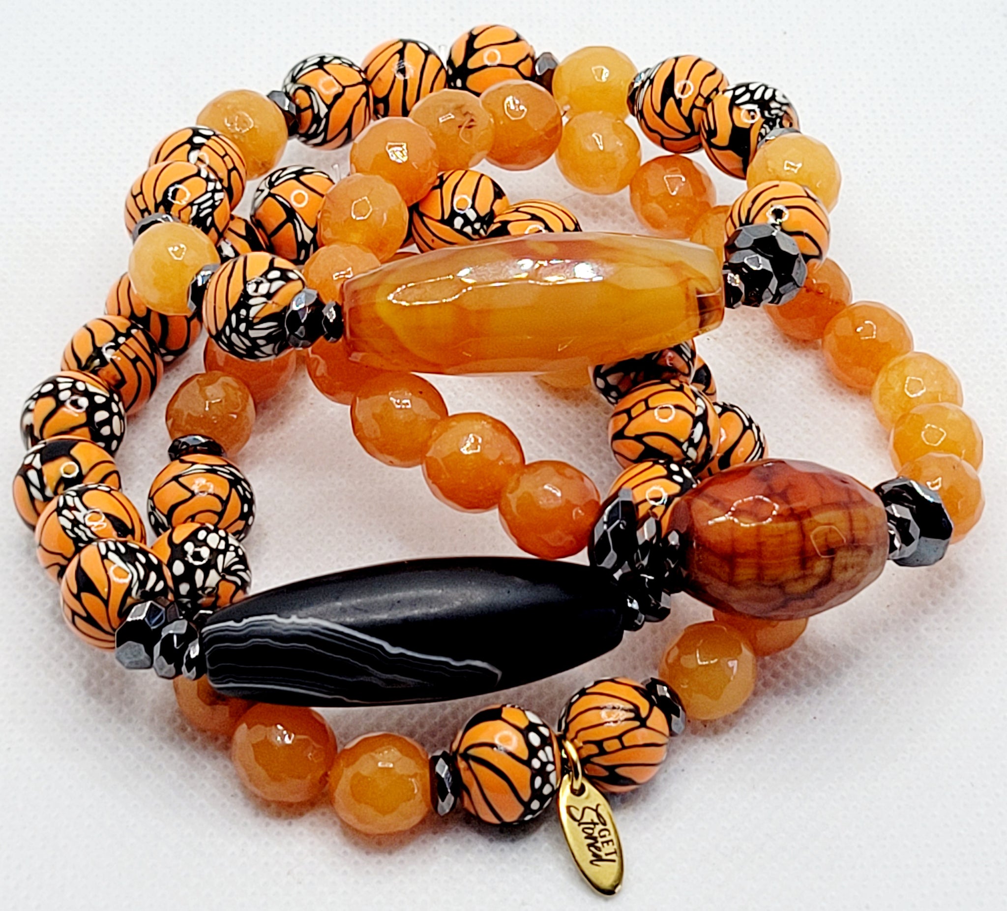This One Of A Kind 10mm Stack Of 4 Is Made With Agates And Handmade Clay Beads. There Is No Denying That This Stack Is Beautiful And Unique.