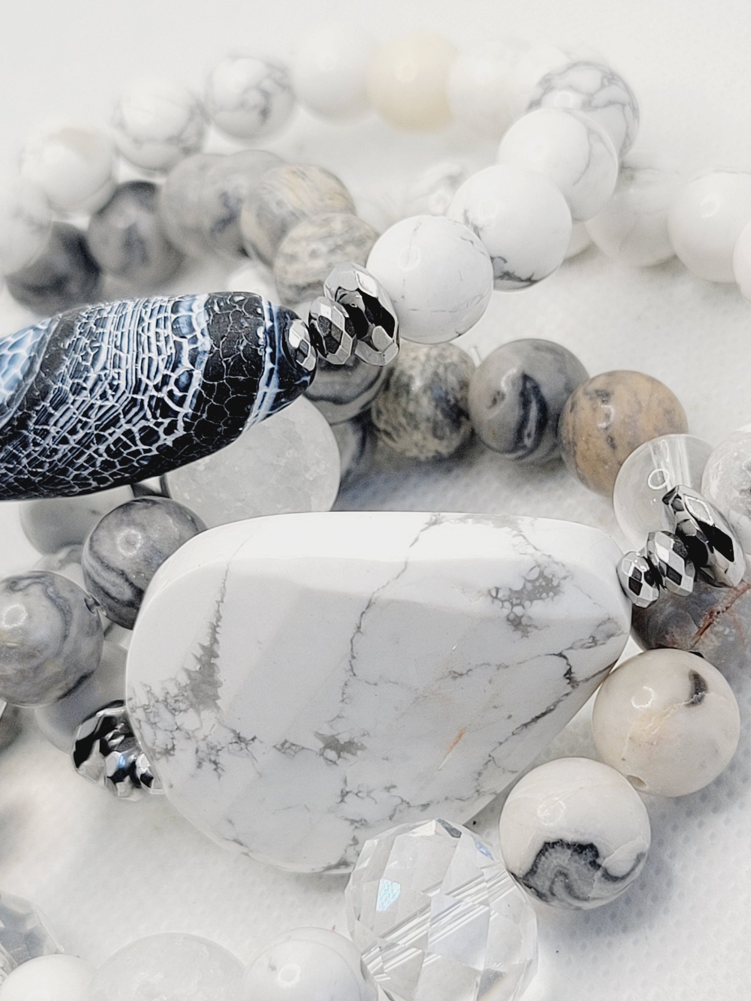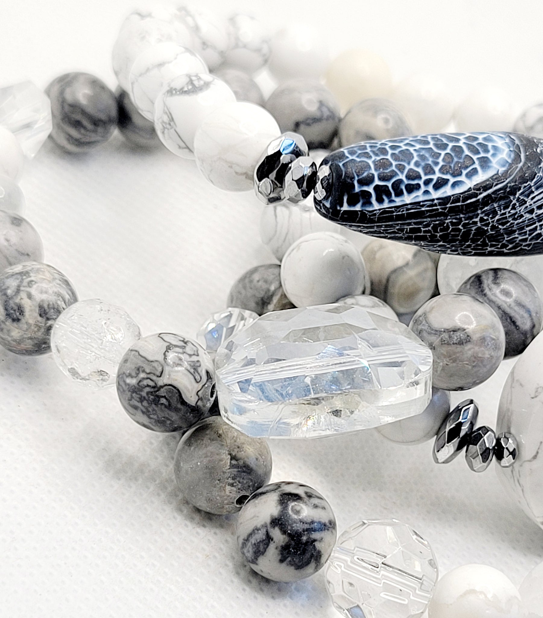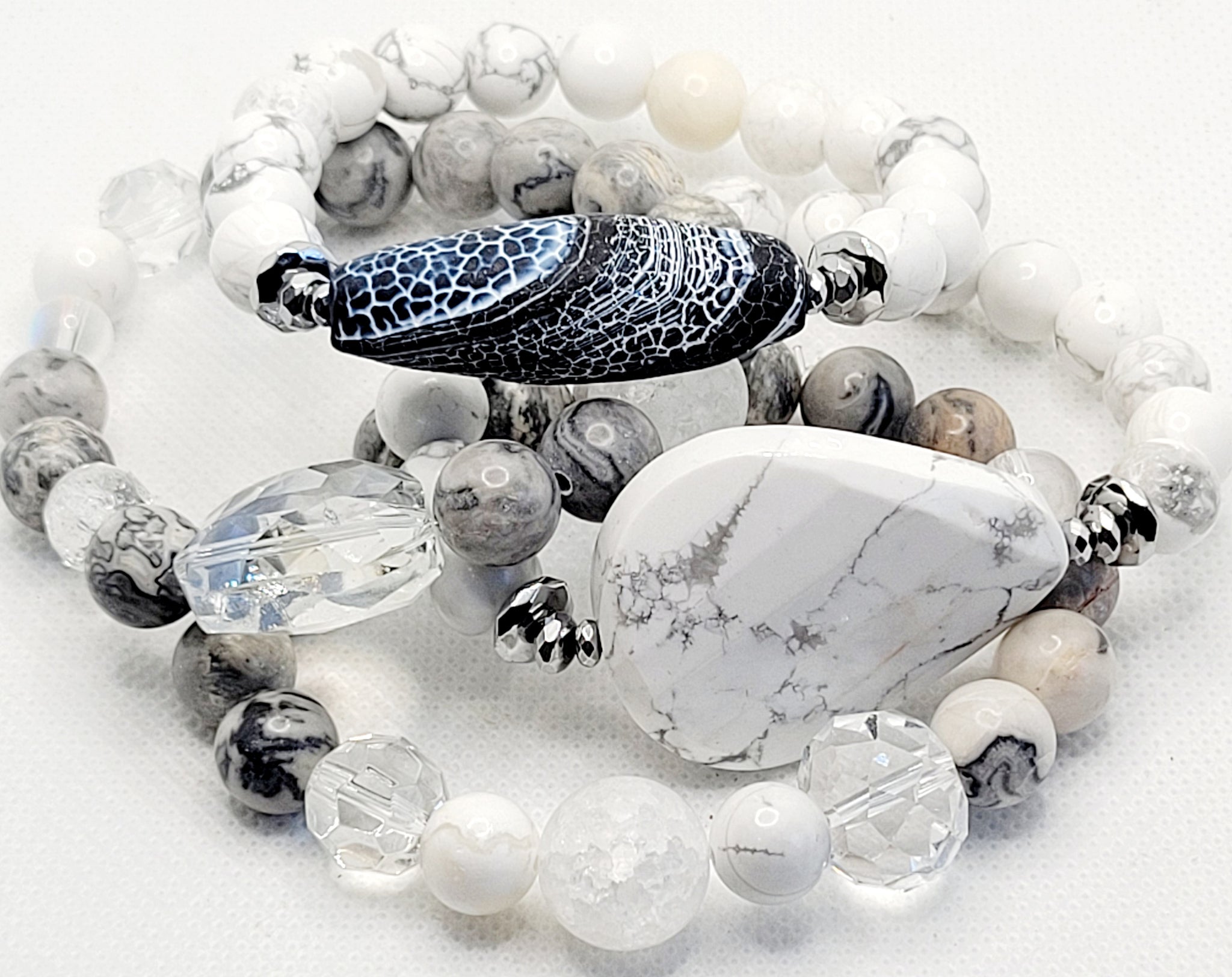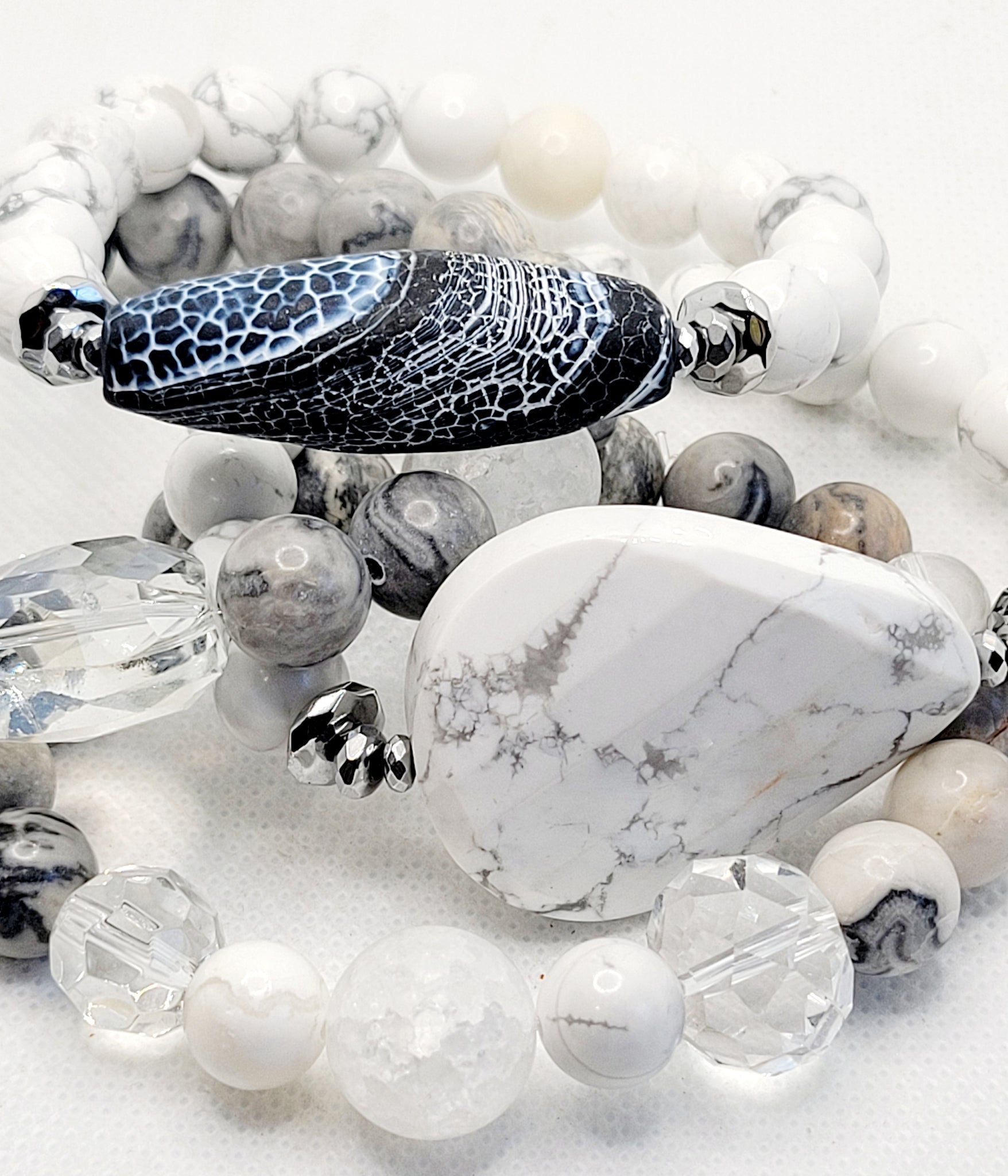 The Classic Is A Stack Of 4 Bracelets Created Using Howlite, Blown Glass & Crystals...Beads Are 10mm