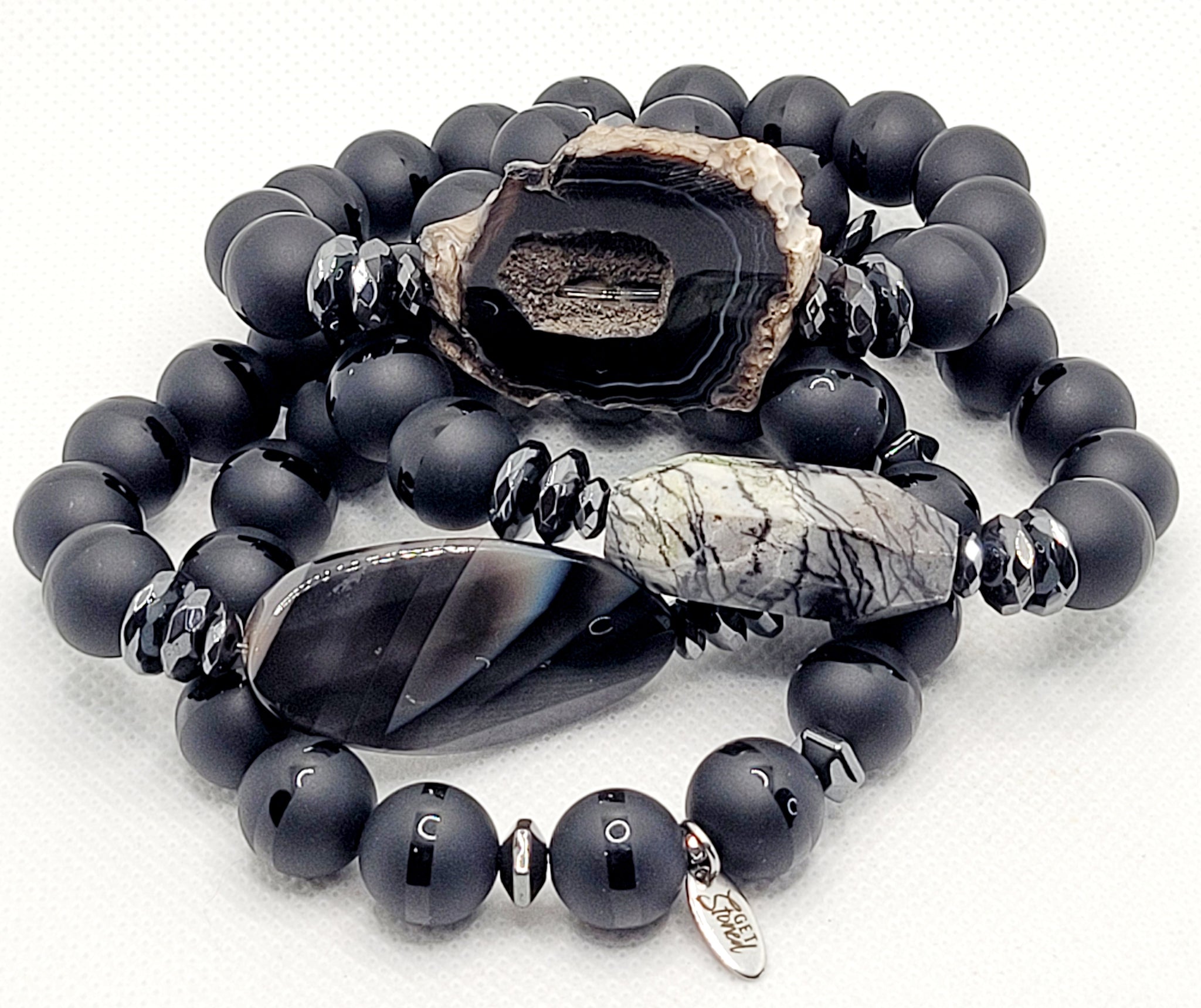 12mm Black Tibetan Agate Stack Of 4 Fits Wrist Size 7.5-8 Inches