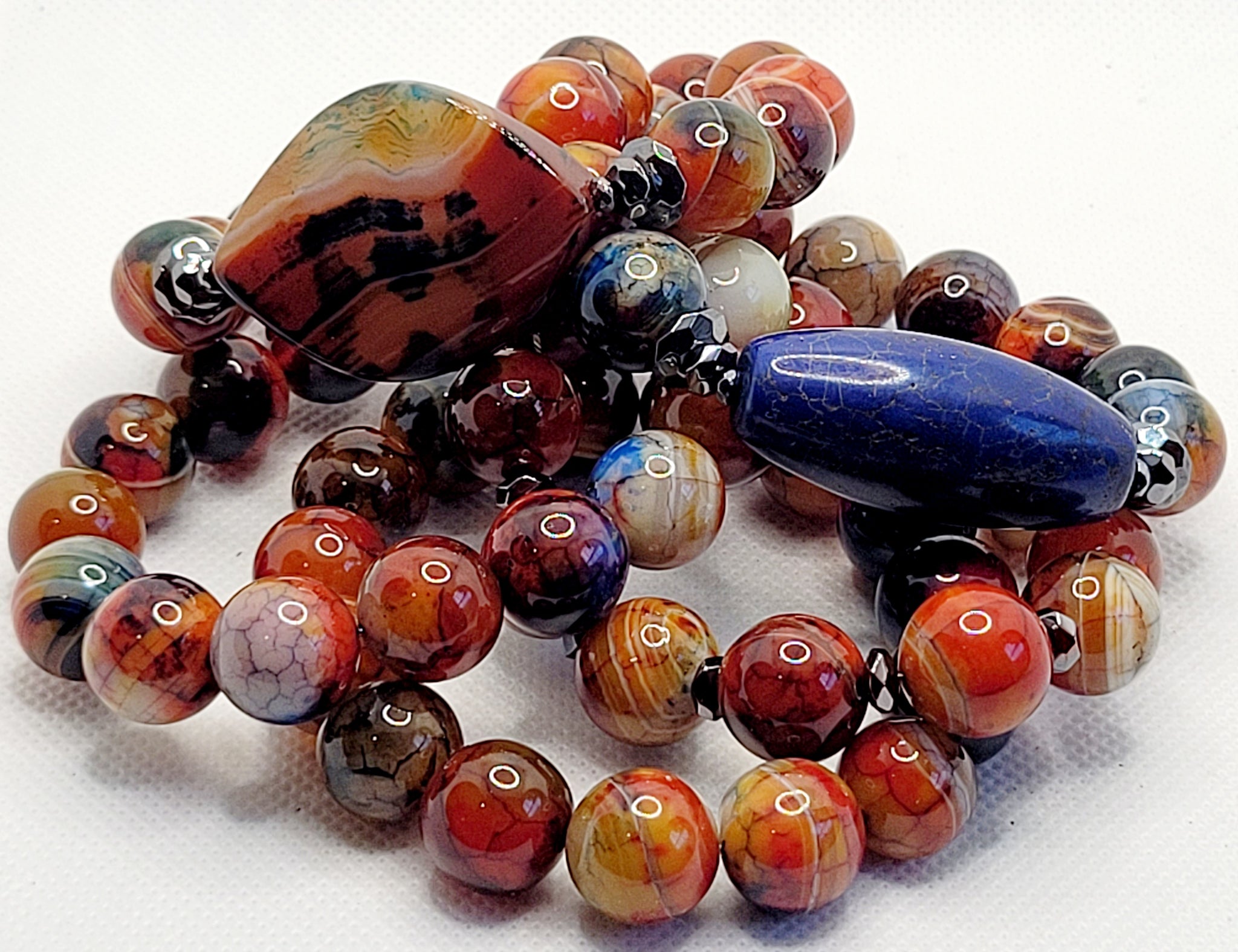 Fall Favorite Is A Stack Of 5 Bracelets Created Using 14mm Multi Colored Fire Agates