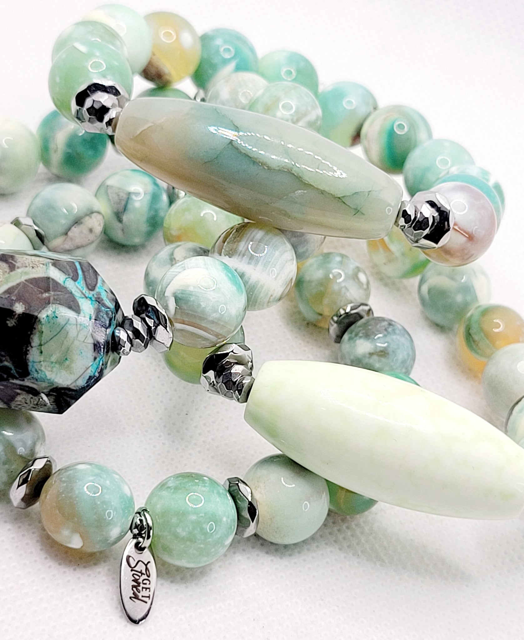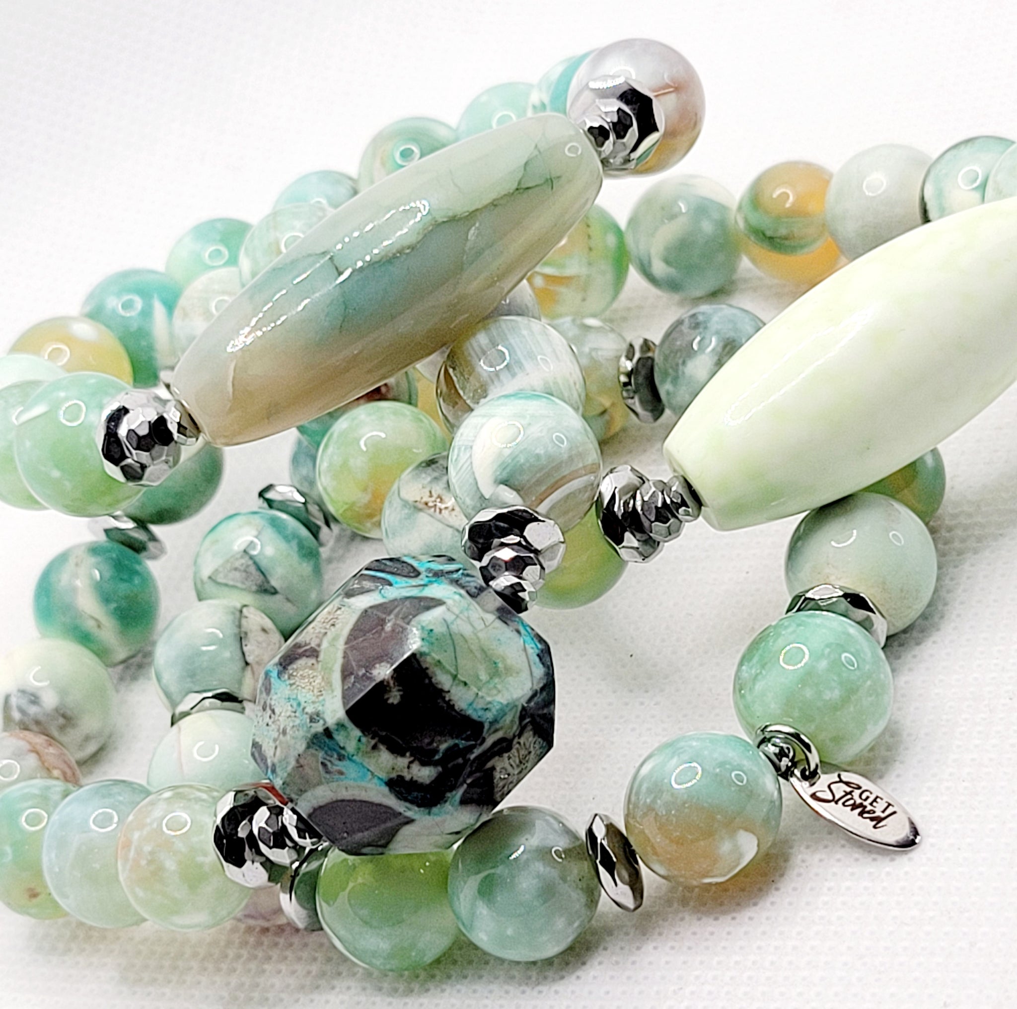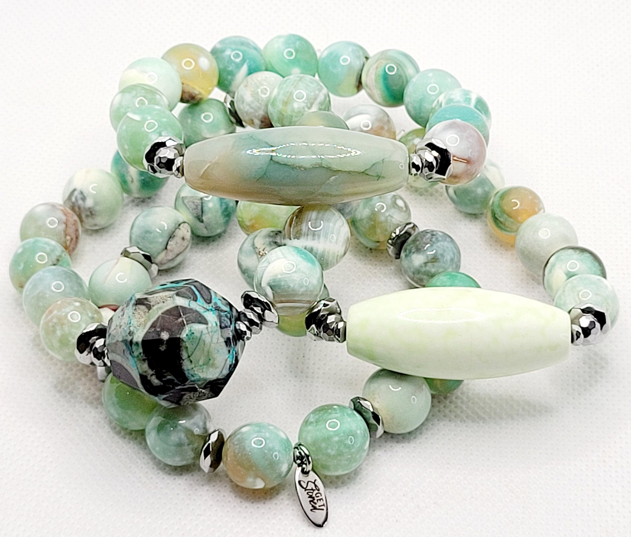 Stack Of 4 Smooth Agates Fits Wrist Size 7.5-8 Inches