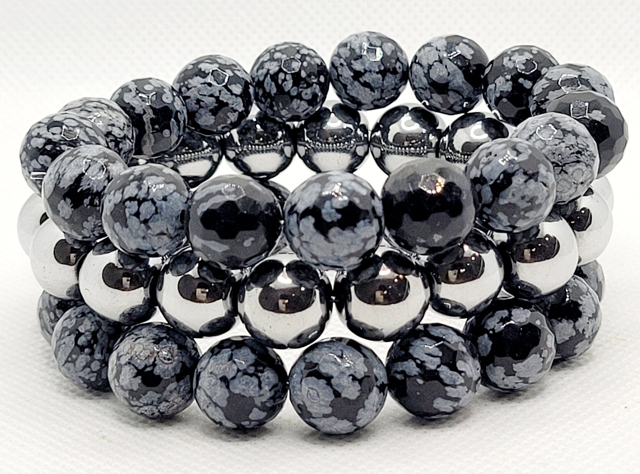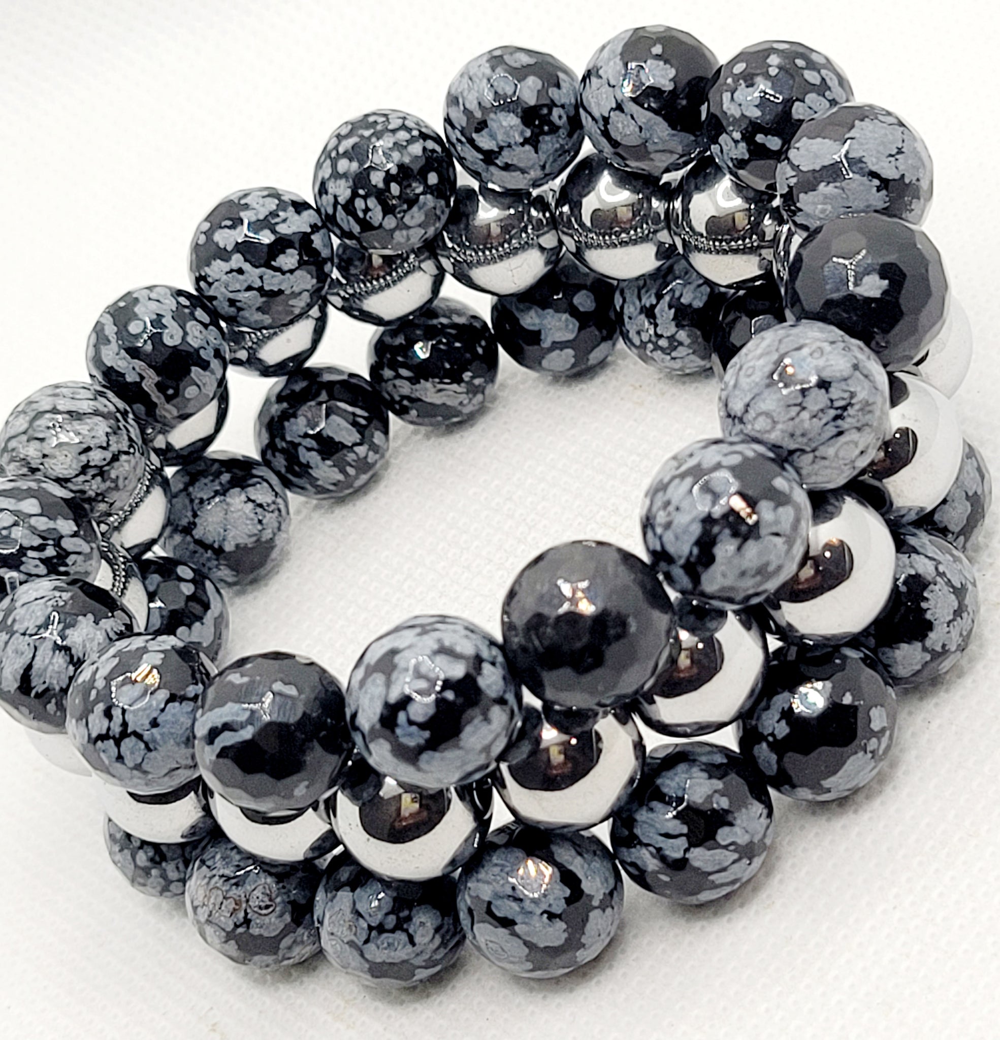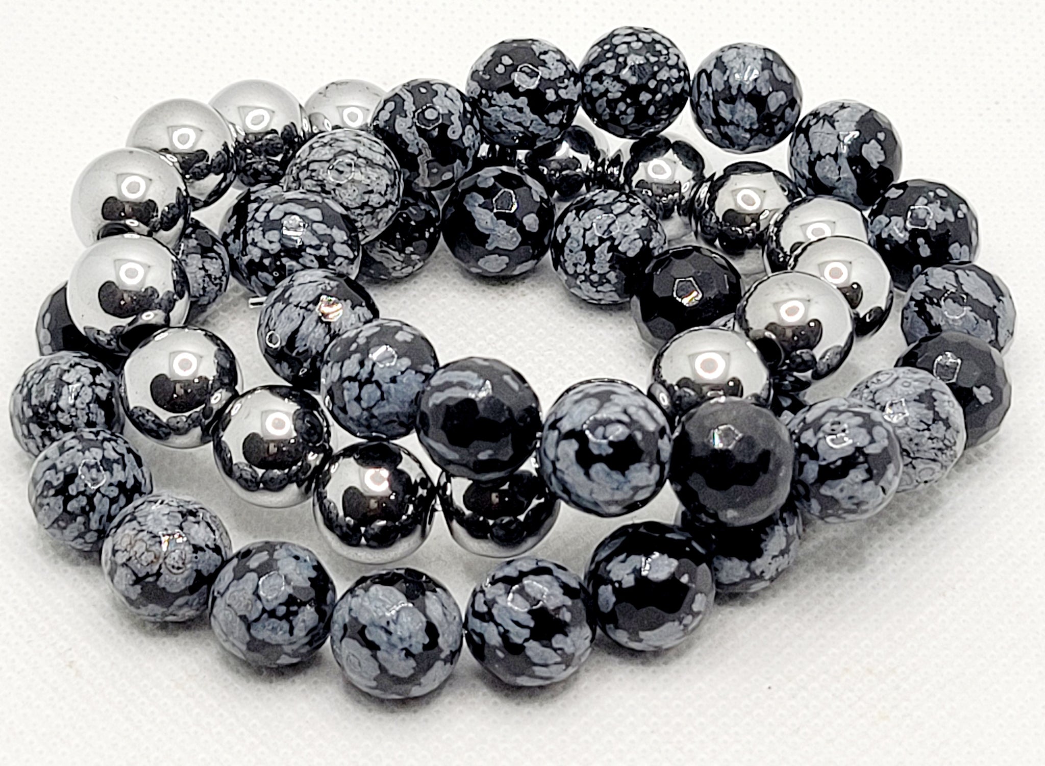 12mm Snowflake Agate & 12mm Antique Silver Hematite