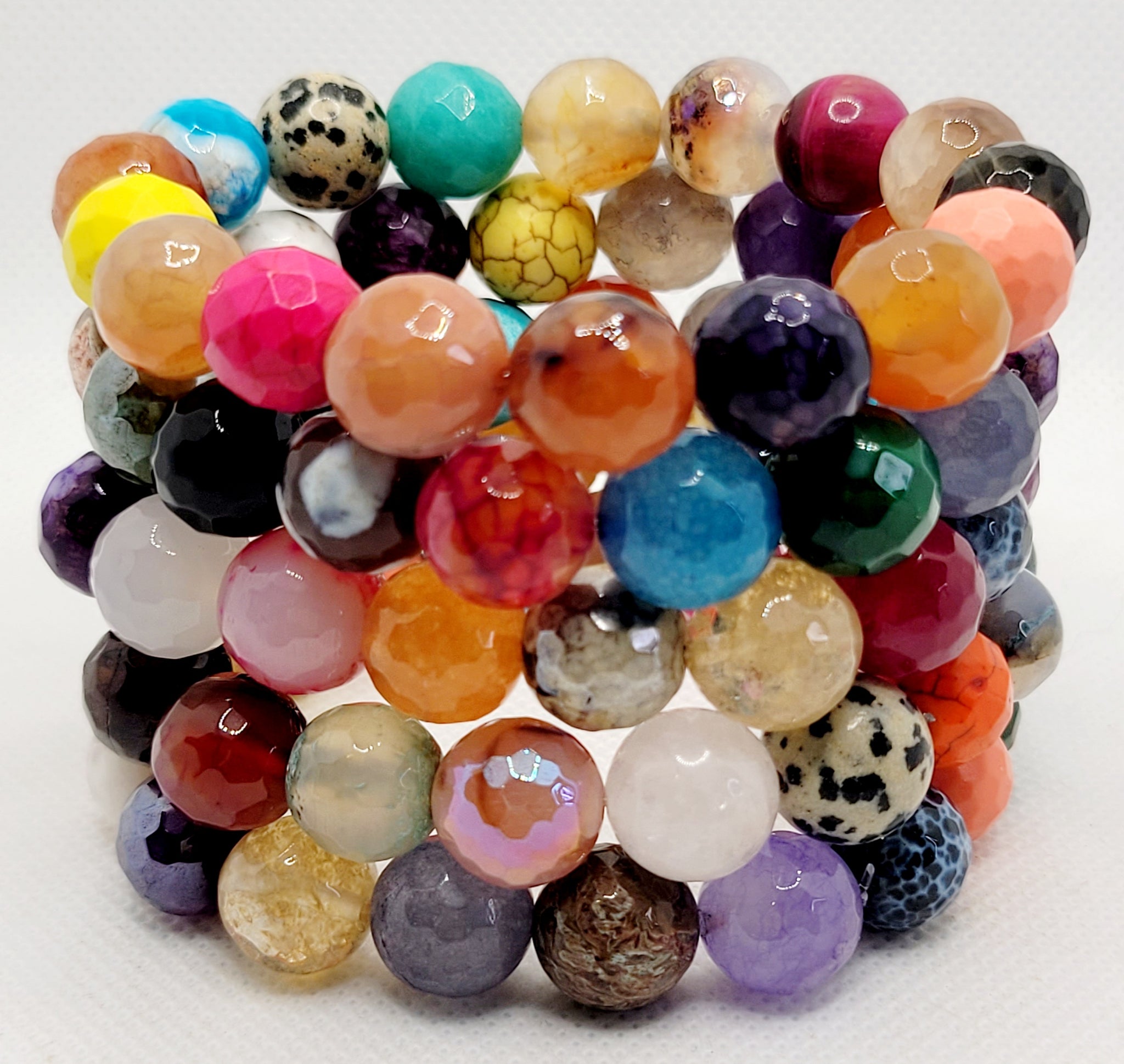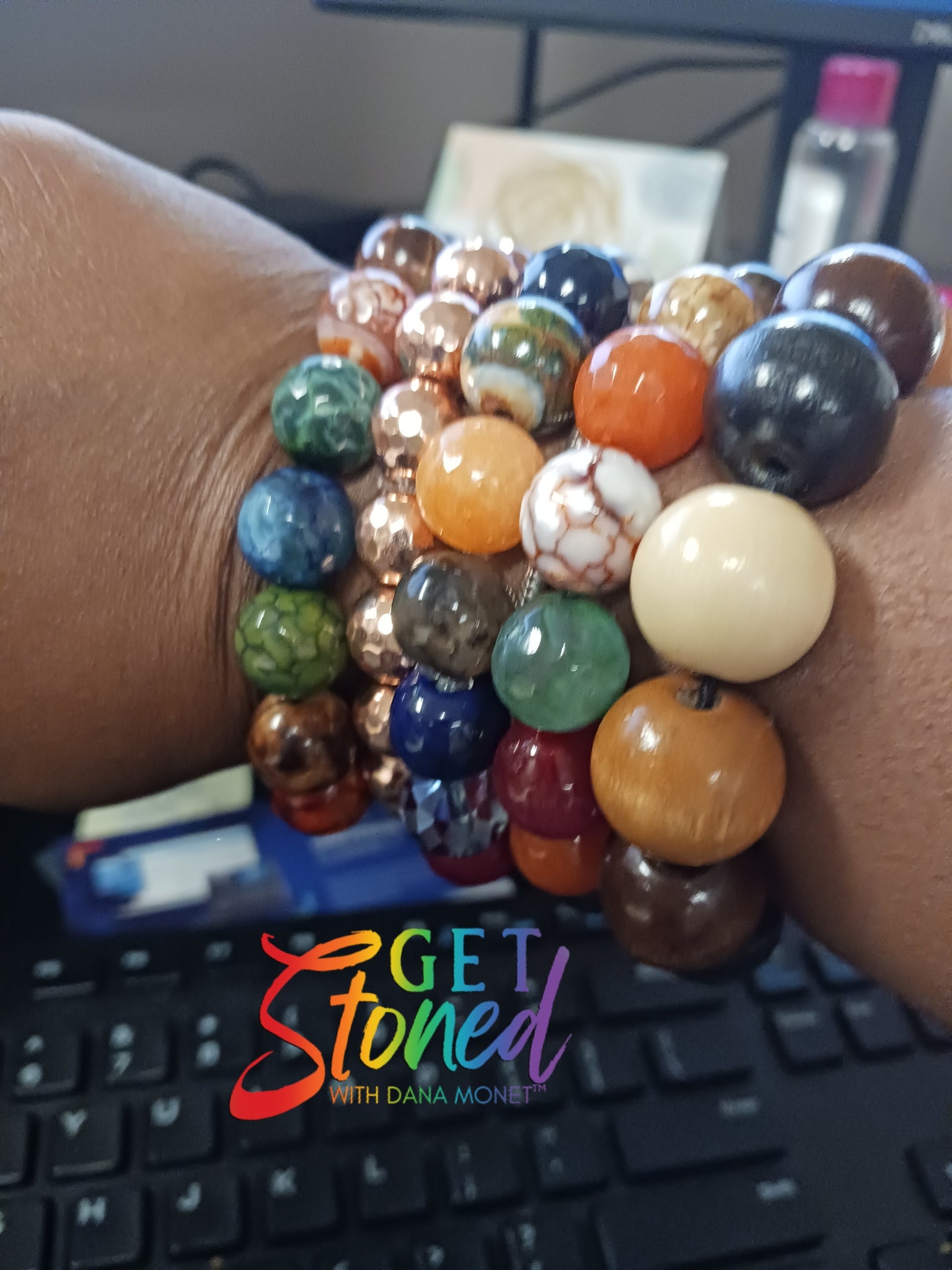 We Are Still Getting Ready For Beaches & Cruises!! All In Color..Grab Our Original 12 & 14mm Mixed Get Stoned Chaos Stacks Of 3. Stacks Are Mixed With Randomly Selected Gemstones. Stacks Can Be Worn In Swimming Pools And At The Beach!! Accessorize Your Swimwear & Summer Attire With Your Get Stoned Chaos Stacks!!