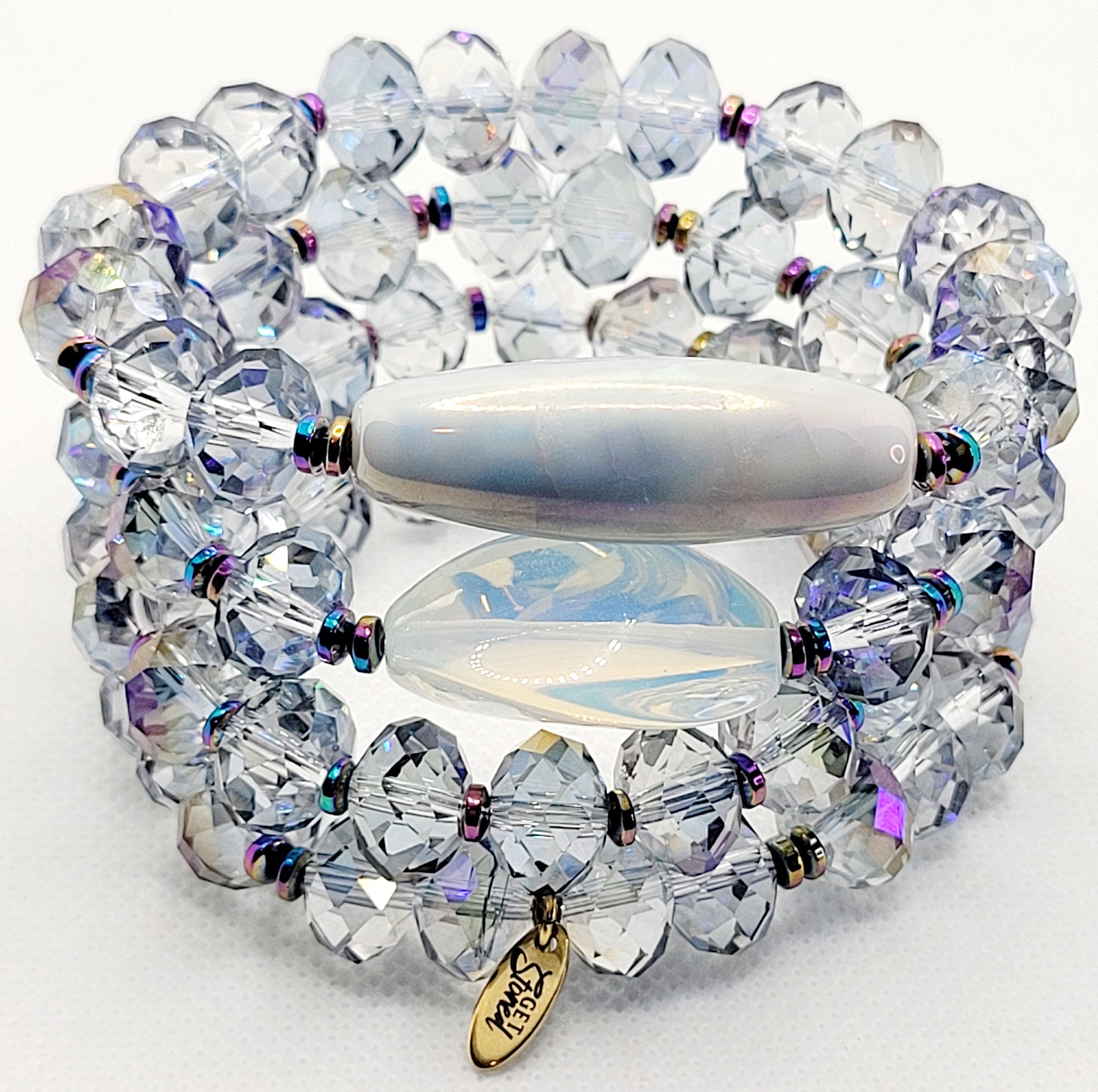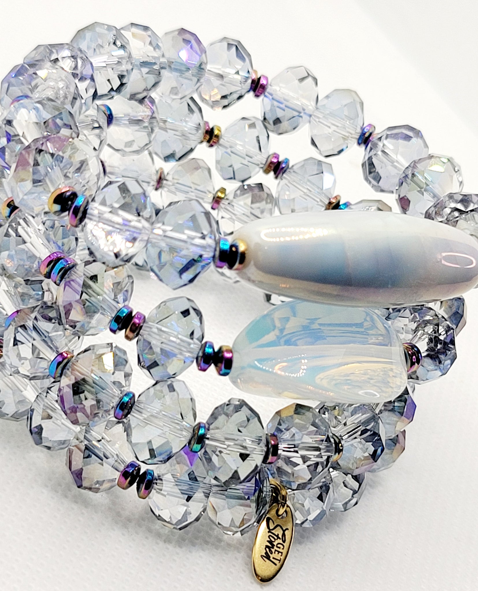Stack Of 4 12mm Unicorn Crystals Adorned With Rainbow Hematite. When Any Light Shines On This Stack It Is Totally Magical!!