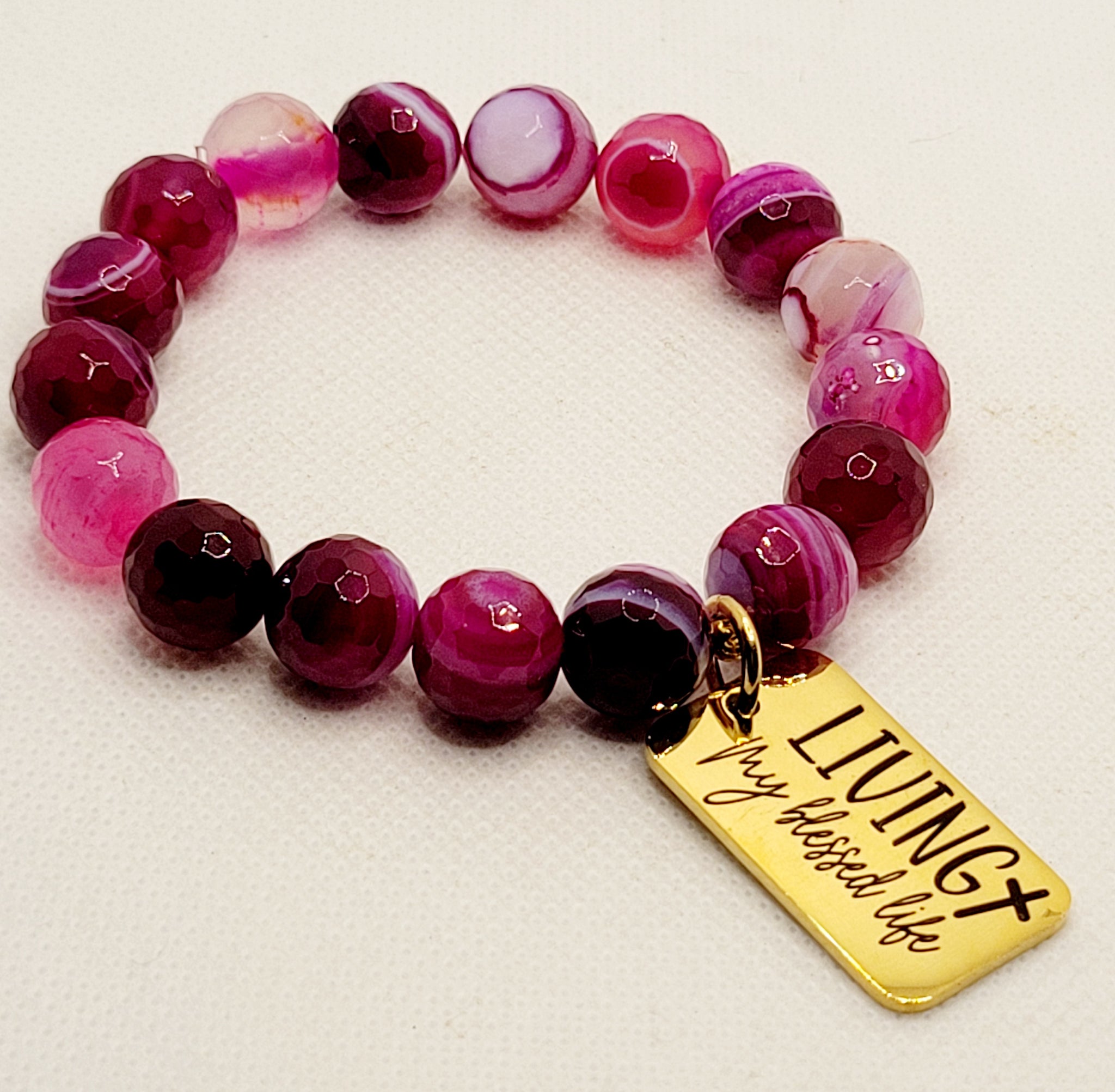 12mm Banded Agate Fit Wrist Sizes 7.5-8 Inches