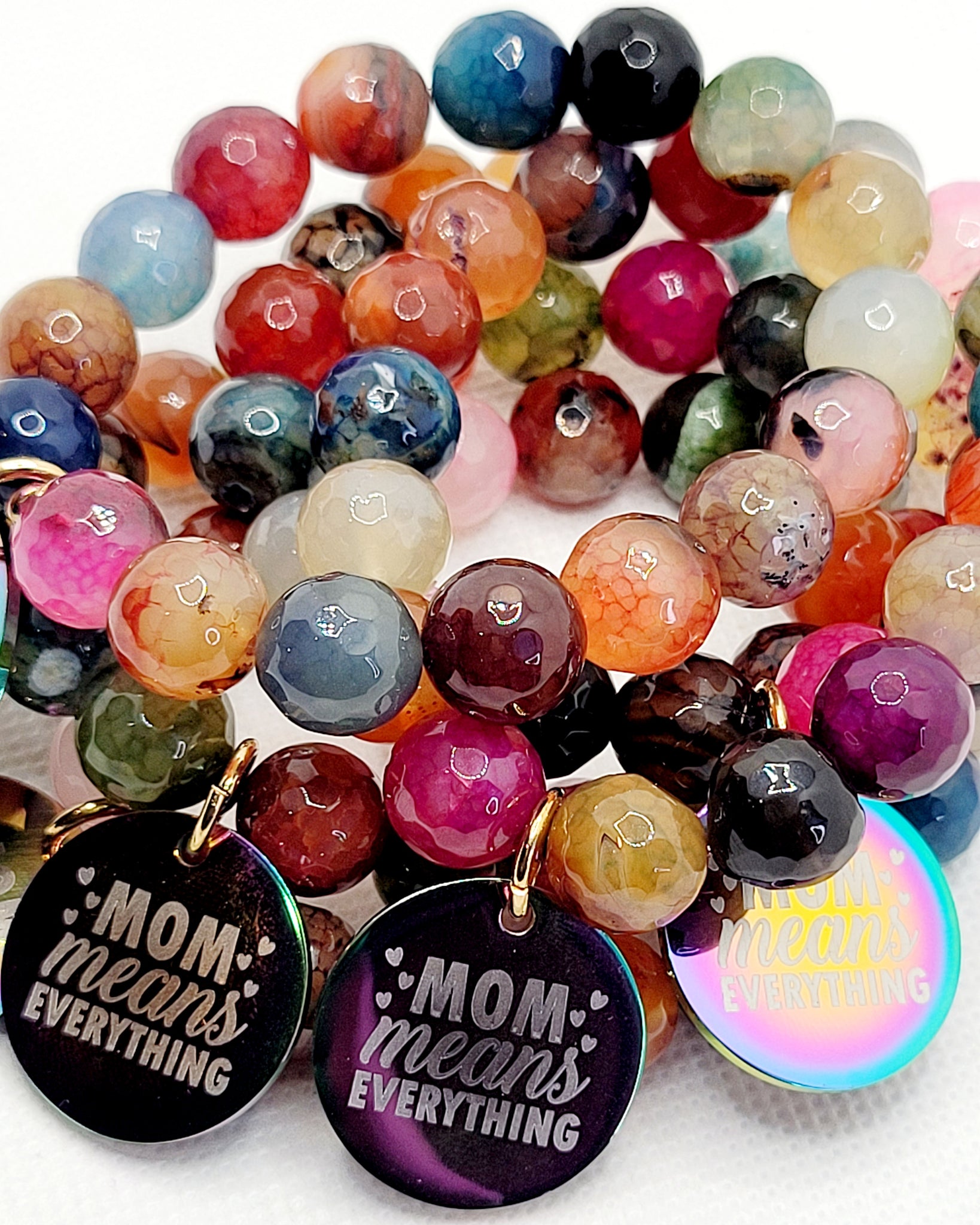 Happy Mother's Day! It's Almost That Time..Get A Head Start With These 12mm Mixed Banded Agate Singles With These Adorable Rainbow Stainless Steel Charms!